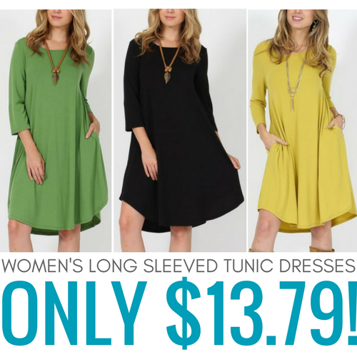 You can also get Women’s Long Sleeved Tunic Dresses for just $13.79.