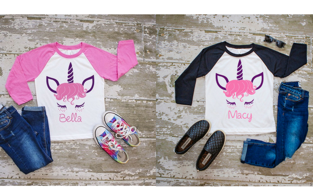 Kids Personalized Unicorn T-Shirts My daughter is obsessed with unicorns, so she would go crazy for these adorable tees! Get these Kids Personalized Unicorn T-Shirts for just $14.99 (reg. $30)! These soft raglan tees come in a variety of colors and…