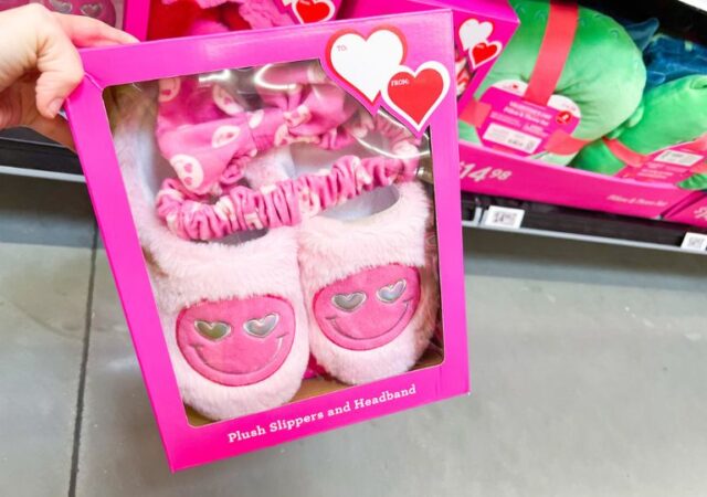 I was at Walmart this week and spotted an easy gift idea for V-Day!! Check out these adult Valentine’s Day Slippers and Headband Sets! You don’t want to miss these Valentines Finds at Dollar Tree! Shop Slippers and Headband Sets…