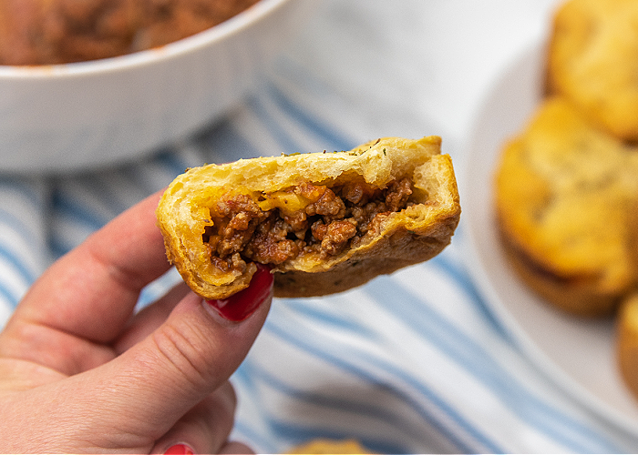 Don’t those look delicious? Be sure to let your Cheesy Sloppy Joe Bombs cool for 3-5 minutes before attempting to eat them, as the filling inside is super hot!