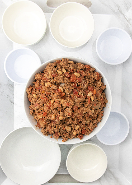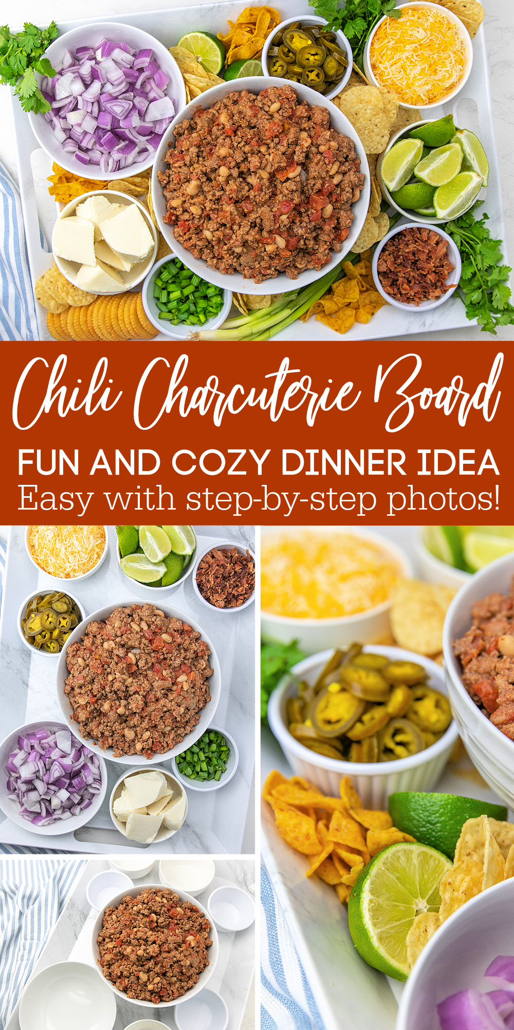 This Chili Charcuterie Board Dinner Idea is a fun way to make a family activity out of a traditional cold-weather meal! Use any chili recipe you like and easily put it together with our step-by-step photos!