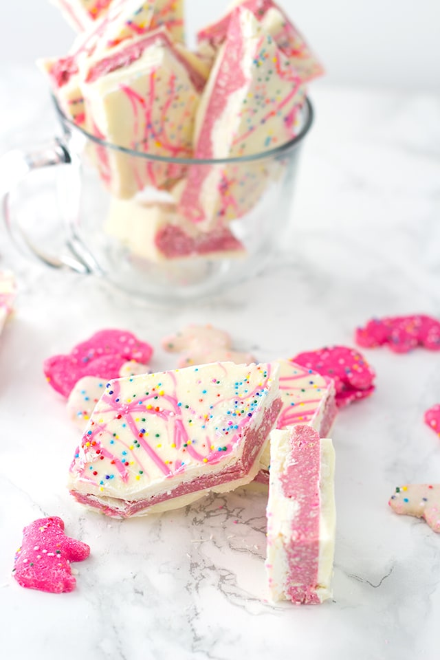 1.) Frosted Animal Cookie Bark from Cookie Dough and Oven Mitts