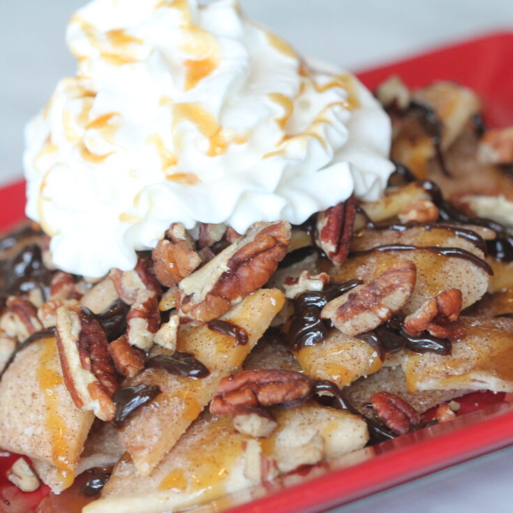 Have you ever wanted to make something for a party that you know your Friends and Family will Love but you’re just short on time and not able to commit a few hours to bake and ice the most amazing dessert? Well, I have a perfect Summer Dessert idea for you – this Dessert Nachos with Churros Chips!