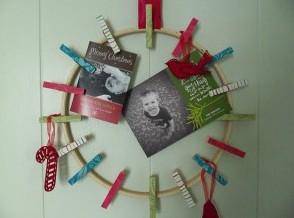 Make a cute holiday card wreath with decorative clothespins. You can use to hang things other than cards too. If you can’t find clothespin you can always decorate them yourself. Grab a pack of wooden clothespins from the dollar store and give them to your kids with some markers. Fun with the family.