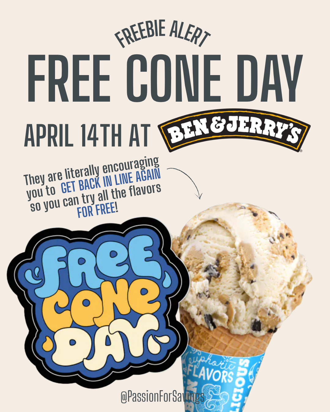 If you have a Ben & Jerry’s Ice Cream store near you, you can head over on 4/14/26 for Free Cone® Day and you don’t even need a coupon! Just go to your local Ben & Jerry’s between 12 noon and 8pm and you will get a Free Ice Cream Cone! Do yourself a favor and add Free Cone Day to your calendar so you won’t forget! It’s hard enough to remember what you’re doing tomorrow. Now you can focus on which flavor to choose.