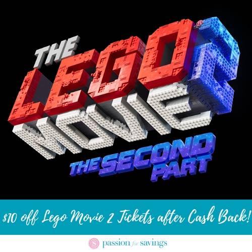 When you Join Top Cash Back you will get an offer for $10 off Lego Movie 2 Tickets on Fandango! That means, depending on your theater’s pricing, you could get one free and maybe even a little off a second ticket :)