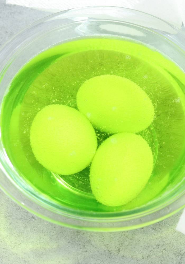 Remove the eggs from the Lighter Color Dye and allow to dry, or pat dry with a paper towel.