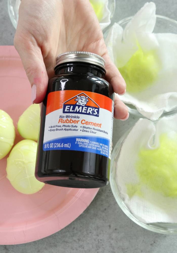 The first thing you need is a bottle of Elmer’s Rubber Cement, You can get this on Amazon or at Walmart! It should be pretty easy to find in the craft department or in the office supplies. It was in the Office Supplies with the Elmers Glue in my store.