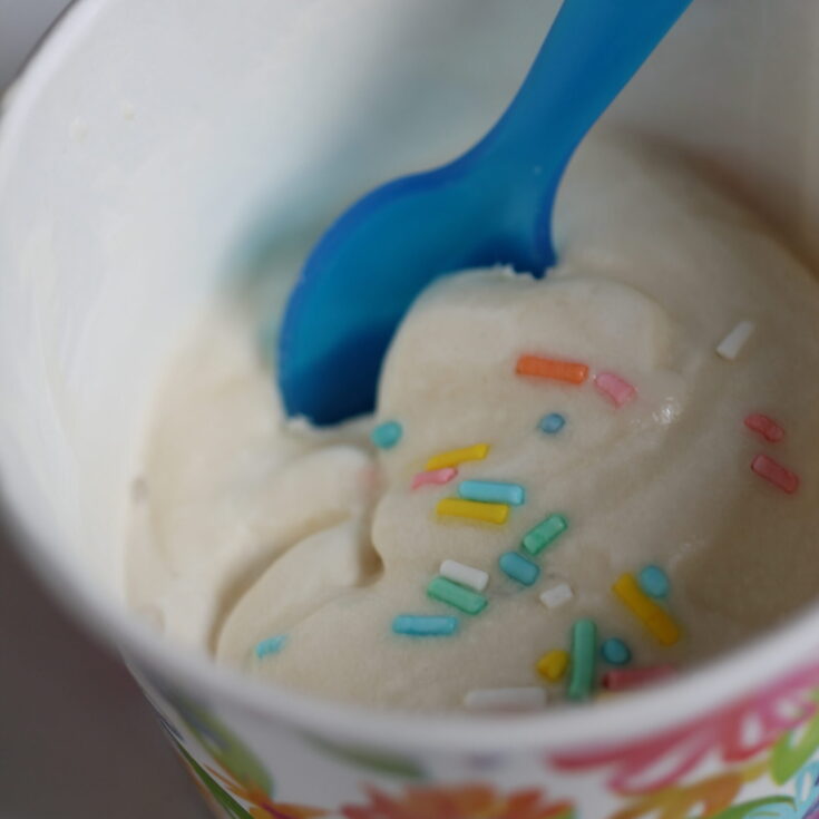 You can place the ice cream in the freezer to harden a little more if you would like. Just don’t wait too long, it’s delicious when it is still soft and has that Homemade Taste!
