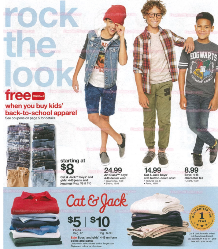 It looks like they are going to have Cat & Jack Polo’s for $5, and Pants for $10! You could buy 2 pairs of pants and 1 polo and use the coupon for the $5 Gift Card. That would have you paying $20 for all three!