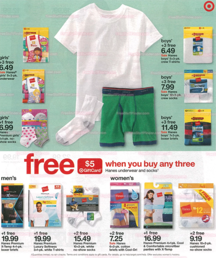 On top of the In-Ad coupon, they will have Hanes Underwear and Sock Buy 3, Get a $5 Gift Card! They have Boys’ Hanes 8 Packs of Crew Neck Tees for $6.49 and 15 packs of socks for $7.99. If you buy 2 packs of shirts and 1 pack of socks, you will pay $27.46 out of pocket. Then, you will get back TWO $5 Gift Cards for the Hanes Gift Card Deal and the In-Ad Coupon. That is like paying $5.82 per pack, or like getting 15 pairs of socks and 16 shirts for $17.46. There are a million different ways to get awesome deals with these stacking coupons, so let me know what you score next week!