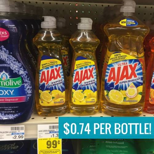 Starting 2/4/18 through 2/10/18 CVS will have the 12.6 oz bottles of Ajax Dish Liquid on sale for $0.99 each. Buy 1 bottle and use this $0.25/1 Ajax Dish Liquid printable paying $0.74 out of pocket. In addition, they will be part of a larger Extra Care Bucks deal if you need a small filler to get your total up.