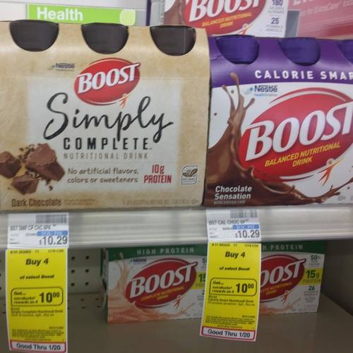 If you want to grab one of the other Boost Products like the Calorie Smart or Simply Complete, those are priced at $10.29 each. Buy 4 and use 2 of the $7.00/2 Boost Nutritional Drinks coupons from 1-7-18 Redplum Insert. You’ll pay $27.16 out of pocket and earn $10 in Extra Care Bucks making it just $4.29 per pack!