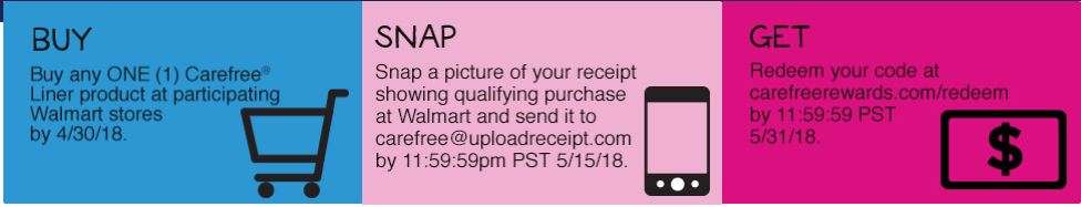 $5 Rebate on Carefree Product over $2 Walmart Carefree Rewards