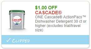 If you are looking for Cascade ActionPacs Coupons, look no further because I will have all of the latest Cascade Coupons and any sales or deals on dishwasher detergent I see right here for you!