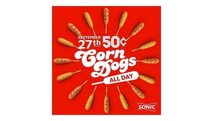 There is nothing to it! Just head to Sonic on Wednesday 9/27/17, and you can order a corn dog for only $0.50! Tax not included. Offer valid only on September 27, 2017, at participating SONIC Drive-In locations while supplies last.