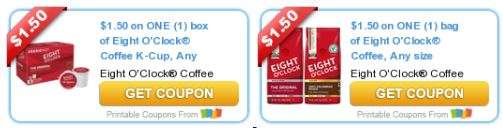 - PRINT: $1.50/1 bag of Eight O’Clock Coffee, any size printable