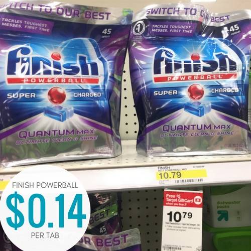 Stock up on dishwasher tabs this week! You can use your Finish Coupons to pick up Finish Quantum Max Powerball Tabs only $0.14 Per Load at Target!