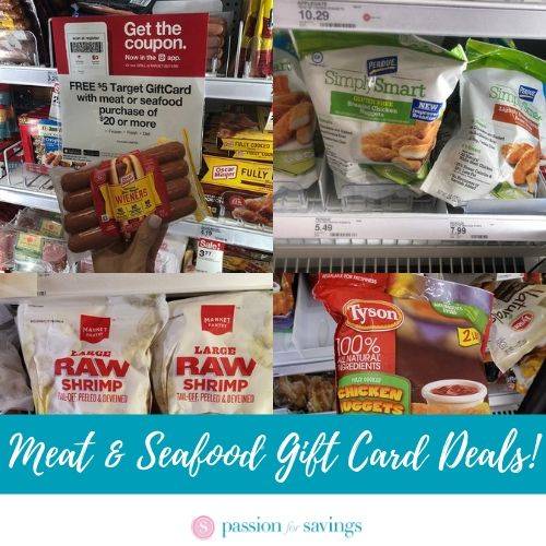 Through 7/06/19 Target is offering a Free $5 Target Gift Card with meat or seafood purchase of $20 or more on Fresh, Frozen or Deli. Excludes meal kits, limit 1 per customer. Make sure you scan your coupon.
