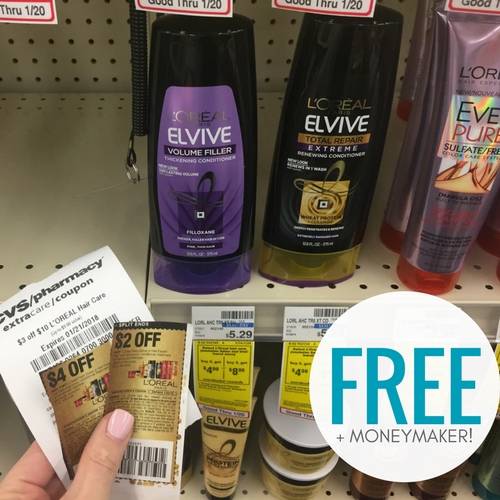 Through 1/20/18 CVS is offering $4 in Extra Care Bucks when you buy 2 L’Oreal Products or $8 in Extra Care Bucks when you buy 3. The 12.6 oz bottles of L’Oréal Elvive Shampoo or Conditioner are priced at $5.29 each. Buy 3 bottles and stack the $3.00/$10 L’Oréal Hair Care CVS Kiosk Coupon (if you got it) with 1 of the $4.00/2 L’oreal Coupons from 1-7-18 Redplum Insert and 1 of the $2.00/1 L’oreal Coupons from 1-7-18 Redplum Insert paying $6.87 out of pocket. You’ll earn $8 in Extra Care Bucks making them all FREE + $1.03 Moneymaker!