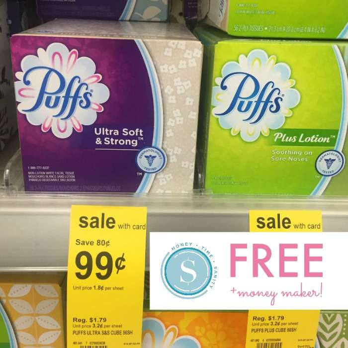 You can also sign up for Checkout 51 here and get a $1 rebate on a Box of Puffs at any store. The limit on this deal is 1 so you won’t be able to grab a lot, but Free is still a really awesome price for tissues!