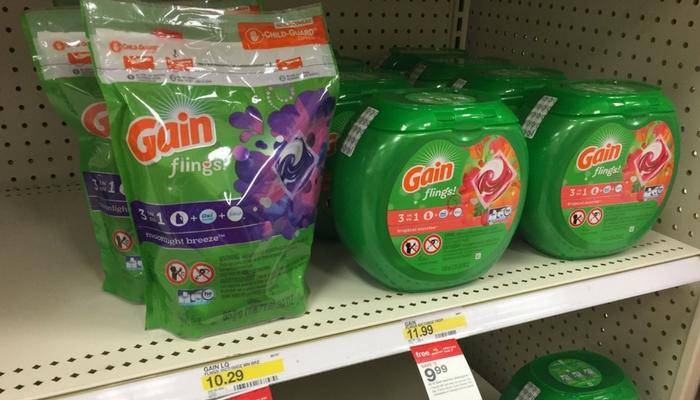 We have some high value Gain Coupons you’ll want to gather up this week! You can use them to pick up Gain Flings 42 Count Tubs for $4.49 each at Target!