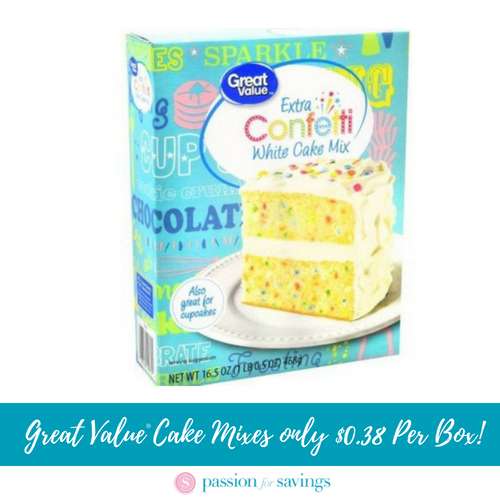 Walmart carries select Great Value Cake Mix for $0.88 each regular price. Buy 1 cake mix and pay $0.88 out of pocket. You can then redeem the $0.25/1 any cake mix Ibotta Rebate and the $0.25/1 any item Ibotta Rebate making it only $0.38. You have until your ibotta rebates expire to grab this deal!