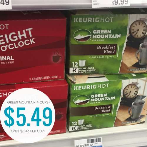 Through 5/12/18 CVS has the 10-12 count Green Mountain® Coffee K-Cups® on sale for $6.99 each. Buy 1 box and use the $1.50/1 Green Mountain Coupon from 3-25-18 Smart Source Insert paying just $5.49 out of pocket. That is as low as $0.46 per cup!