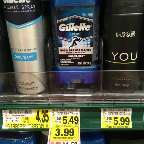 $1.00/1 Gillette Antiperspirant/deodorant – 10-29-17 PG; Limit of 2 Like Coupons Per Household Per Day (exp 11/11/17)
