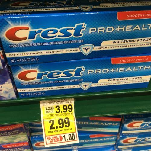 The Crest Pro Health Toothpaste is on sale thru 10/31/17 for just $2.99 that sale price stacked with the new $1 coupon makes it just $0.99!