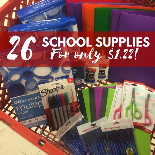 Office Depot was rockin’ this week, and I stocked up big on school supplies for Back to School! I wanted to show you How to Get 26 School Supplies for $1.22 at Office Depot! This included paper, folders, glue, and other things I actually needed!