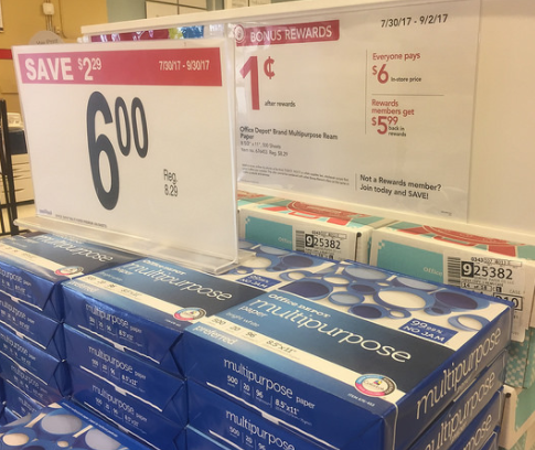The Office Depot Multipurpose Paper is $6 and you will get $5.99 in Office Depot Rewards with a limit of 3 Rewards. I bought three to maximize those rewards ;)