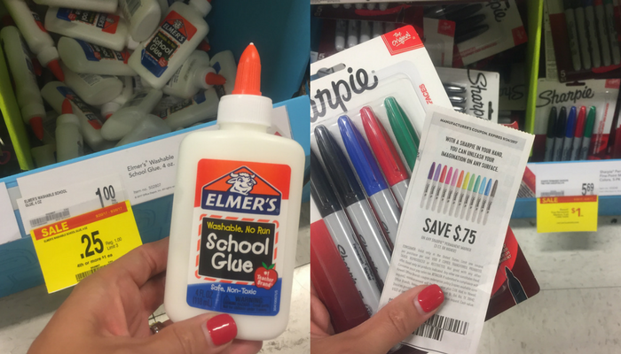 They also had Elmer’s Glue for $0.25 and you can grab 3 of those, and also get one of the 5 Packs of Sharpies which are $1 with the $0.75 Sharpie Coupons from the 7/30 Smart Source Inserts.