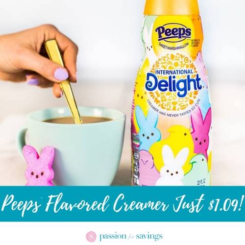 Through 4/6/19 Target has the 32 oz bottles of International Delight Peeps Coffee Creamer on sale for $2.99 each. Buy 1 bottle and stack the 30% off International Delights Creamer Peeps Flavored Target Cartwheel Offer (exp 4/6/19) with the $1.00/1 International Delight Coffee Creamer printable paying $1.09 out of pocket.