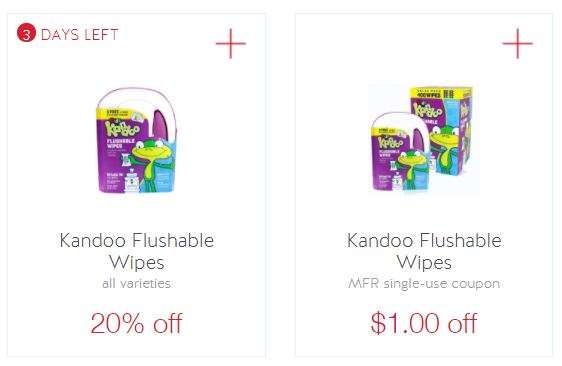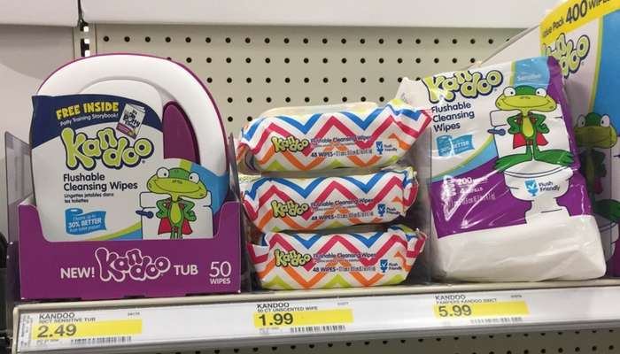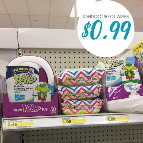 Target carries the 50 count packs of Kandoo Flushable Wipes for $2.49 each regular price. Through 4/21/18 buy 1 pack and stack this 20% off Kandoo Flushable Wipes Target Carthwheel Offer with this $1.00/1 Kandoo Flushable Wipes Target MFR Coupon paying just $0.99 out of pocket!