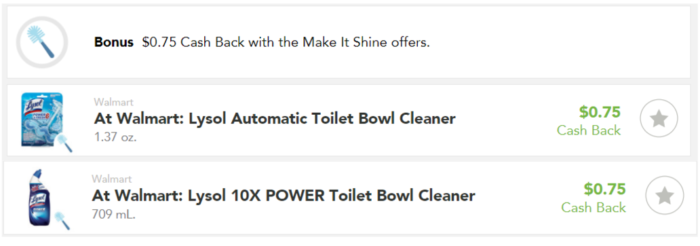 To take full advantage of the Checkout 51 Rebate offers you’ll need to purchase 1 of the Lysol Automatic Toilet Bowl Cleaner 1.37 oz priced at $1.97 each plus 1 of the Lysol 10X Power Toilet Bowl Cleaner 709 ml 24 oz priced at $1.77 each. You can use one of the $1.00/2 Lysol Coupons from 8-27-17 Smart Source Insert paying $2.74 out of pocket. You can then redeem this $0.75/1 Lysol Automatic Toilet Bowl Cleaner – Checkout 51 Rebate and the $0.75 Lysol 10X Power Toilet Bowl Cleaner – Checkout 51 Rebate PLUS this $0.75 Lysol BONUS when you buy two – Checkout 51 Rebate making them both just $0.25 each!
