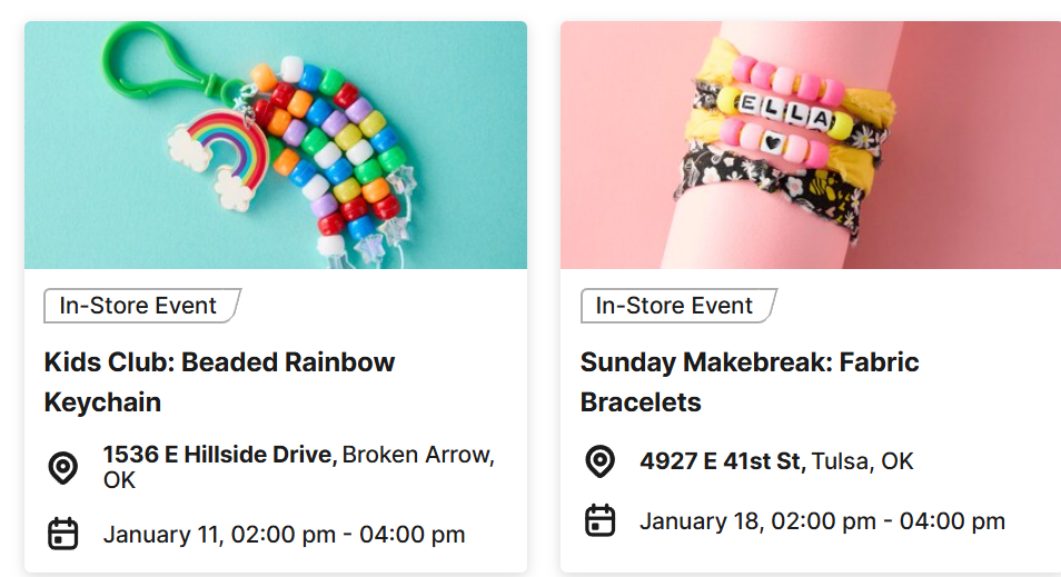 These events are available at all Michaels locations! No need to sign up for this one. Just show up during the designated day/time and you will see the crafting area set up. My store usually hosts them up front by the entrance.