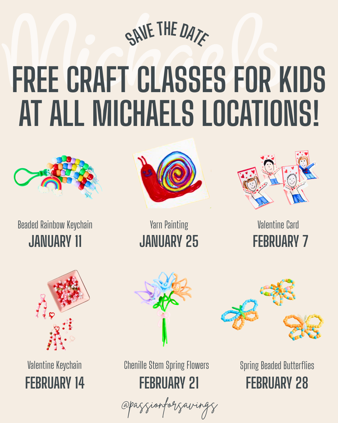 If you are looking for something fun to do with the kids this month then check this out! Head over to Michael’s Free Kids Craft Class! This is a family-friendly activity that you will want to attend. Don’t miss these events I have posted from Michael’s!