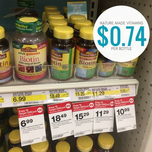 We have a really nice deal on Vitamins this week! You can stack your Nature Made Coupons and rebate to pick up Nature Made Biotin Gummies for only $0.74 at Target!