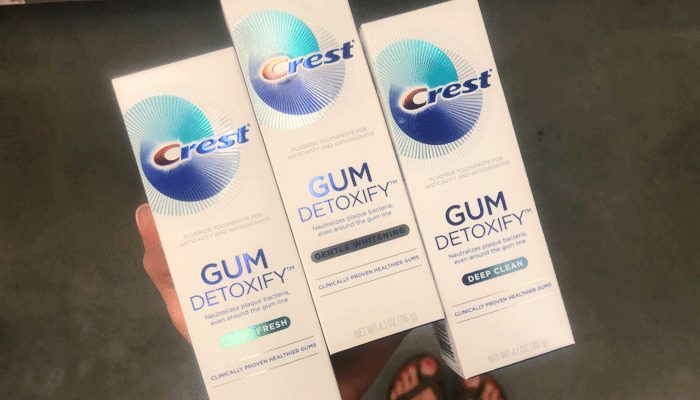 There are three different flavors of the Crest Gum Detoxify Toothpaste: Deep Clean, Extra Fresh, & Gentle Whitening.