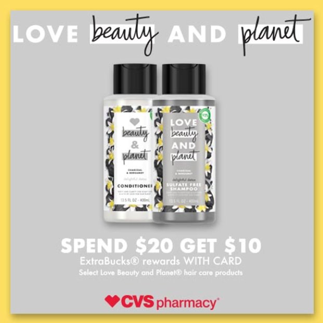 This week CVS has an ExtraBucks offer on the Love Beauty and Planet Delightful Detox Shampoo & Conditioner! You can get $10 in ExtraBucks with your ExtraCare card when you spend $20 or more on Love Beauty and Planet Shampoo or Conditioner at CVS!