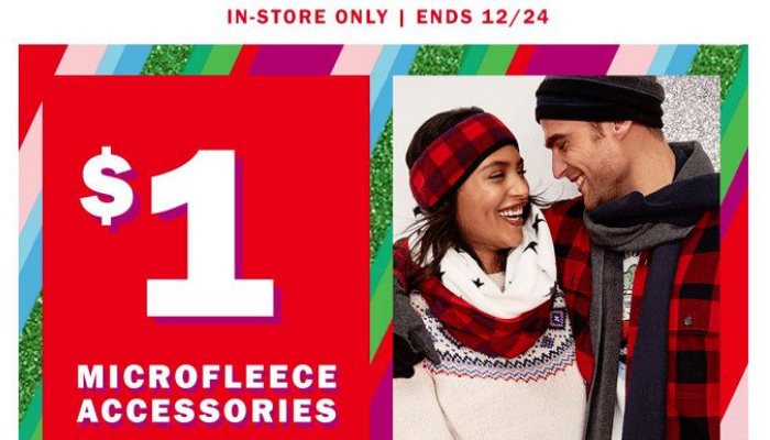 Hurry over to Old Navy to get your $1 Microfleece Accessories today only, 12/24!
