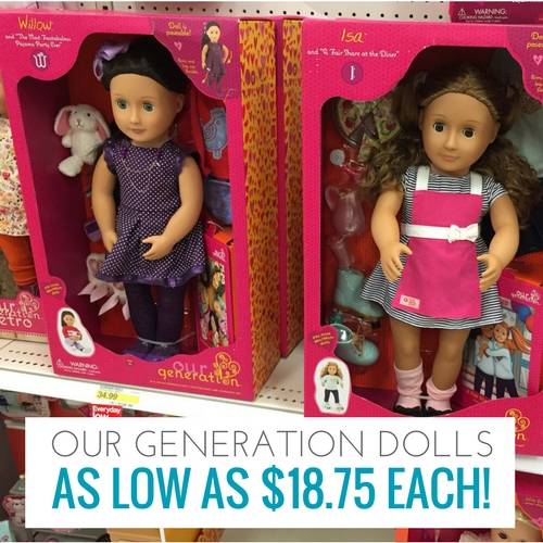 There are several Our Generations starting at $24.99 each in store or online! Through 2/17/18 Target is offering Our Generation Dolls and Accessories on sale for buy one, get one 50% off. You will need to purchase 2 Our Generation Dolls and you’ll pay just $18.75 each after sale!! Super easy deal!