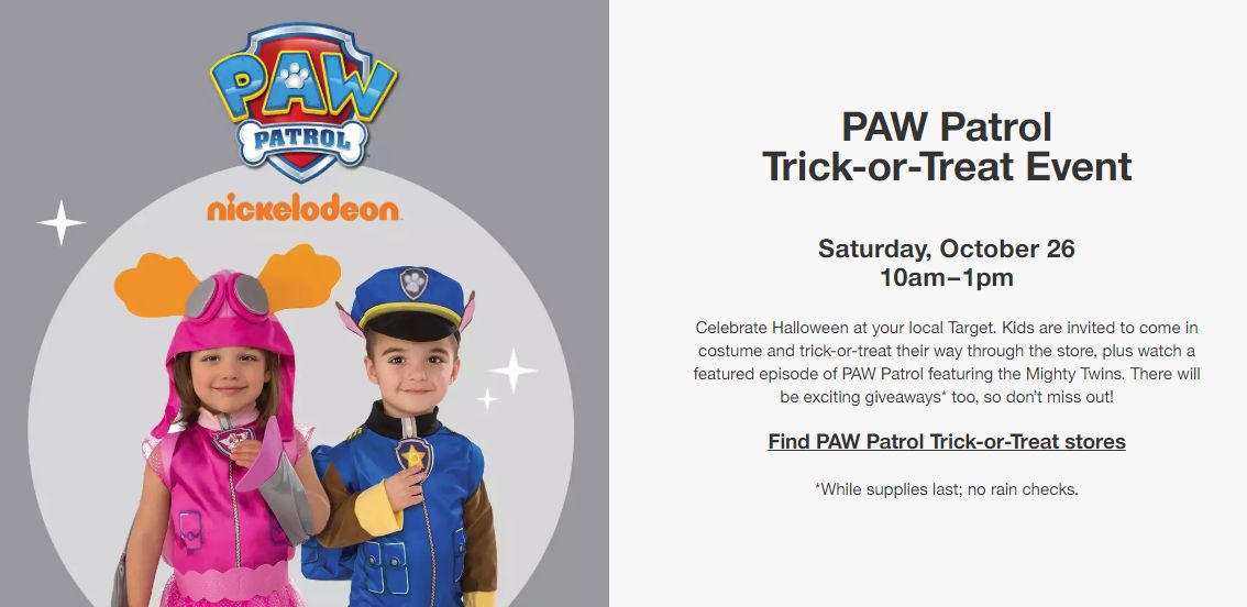 FREE Paw Patrol Trick-Or-Treat Event at Target on 10/26!