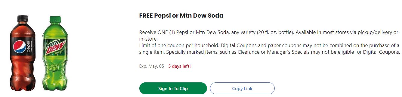 Kroger has released an awesome freebie! You can clip this Free Pepsi or Mtn Dew Soda, any variety 20 oz bottle digital coupon. Limit 1. Available in most sores via pickup/delivery or in-store. Easy peasy!