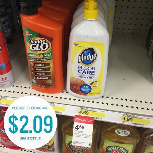 Through 9/16/17 Target is offering a FREE $5 giftcard when you buy 5 select Windex, Clorox, Tilex, Pine-Sol, Pledge, Drano, Scrubbing Bubbles, Green Works, Method, Formula 409 or Liquid-Plumr household cleaning items. The 27 oz bottles of Pledge FloorCare Wood Squirt & Mop are priced at $4.69 each. Buy 5 bottles and use 4 of the $2.00/1 Pledge Floor Cleaner printable paying $15.45 out of pocket. You will then receive a $5 Target gift card at checkout making it $10.45 or just $2.09 per bottle!