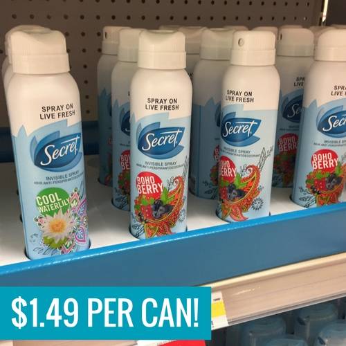 Pick up Secret Invisible Spray Deodorant only $1.49 at Target!