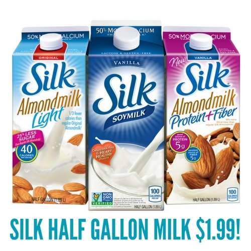 Target carries the Silk Half Gallon Milk for $2.99 regular price. Buy 1 and use this $1.00/1 Silk Product; Includes 1/2 gal Only; Must Sign Up To Access Coupon paying $1.99 out of pocket! Super easy! Please note you have to sign up to have access to the coupon which expires on 8/30/17 so you have until then to grab this deal.