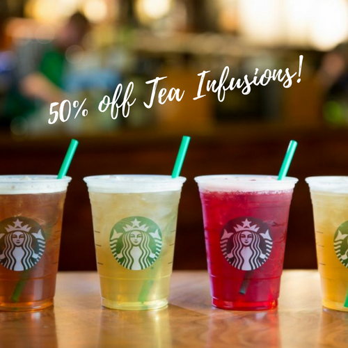 The coupon is for half off Starbucks Tea Infusions through 7/24 inside Target Store Starbucks locations!