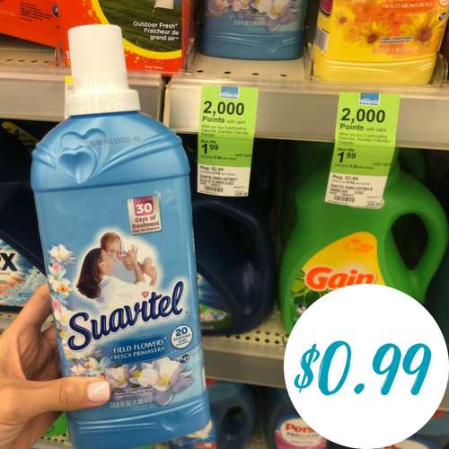We have a nice points deal that will get you cheap laundry supplies! You can use your points to pick up bottles of Suavitel® Fabric Softener for only $0.99 each at Walgreens!